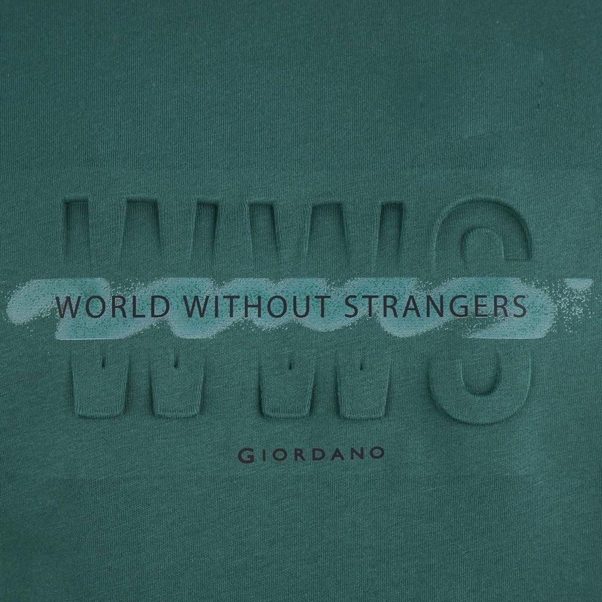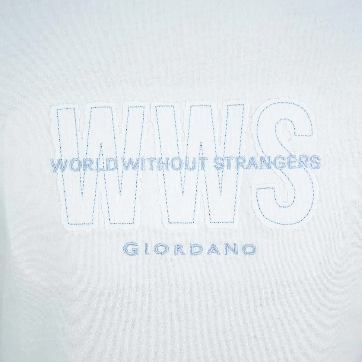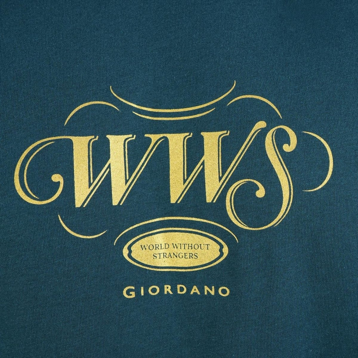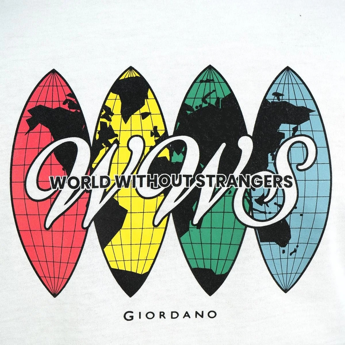 طباعة WWS الرسومية: تتميز برسالة جيوردانو المميزة "عالم بلا غرباء"، والتي تروج للشمولية والوحدة العالمية.