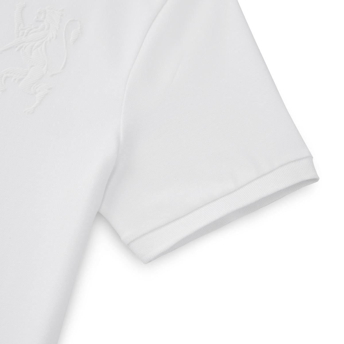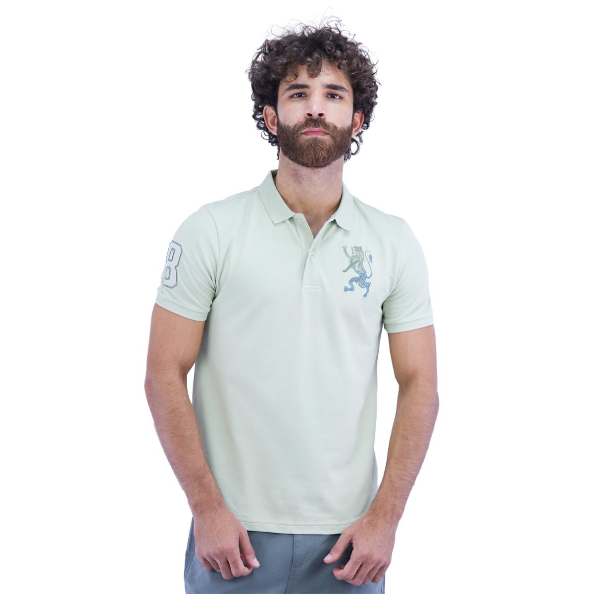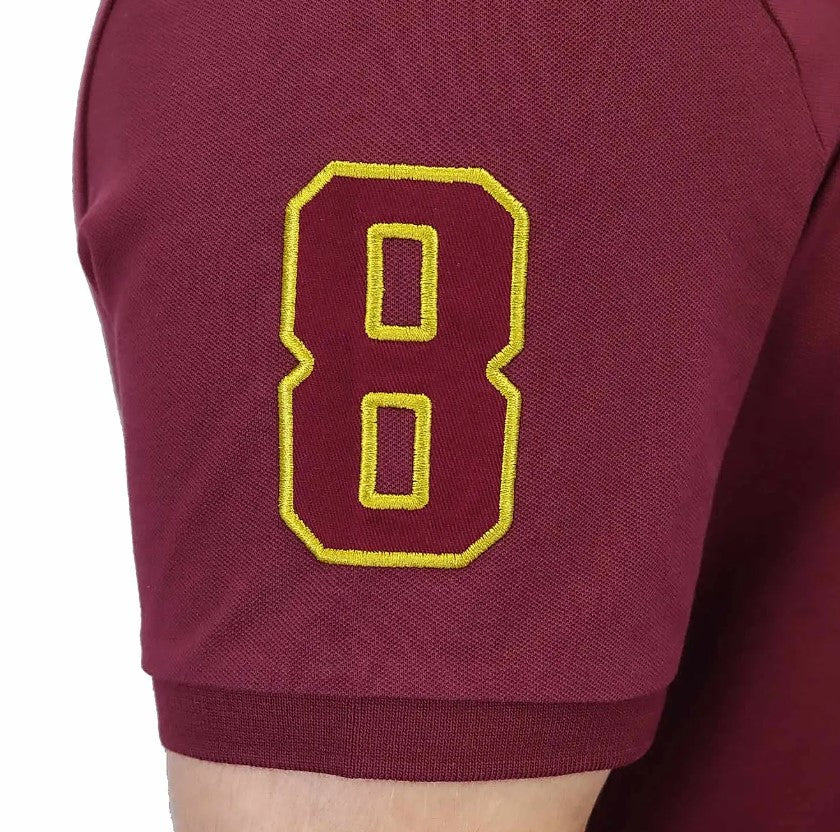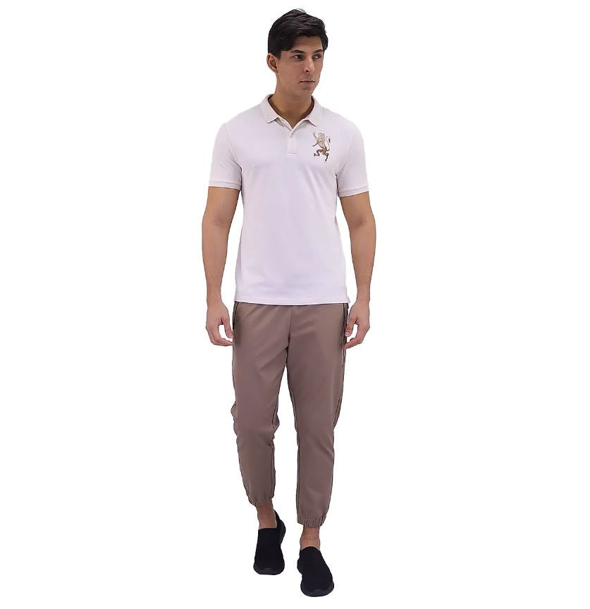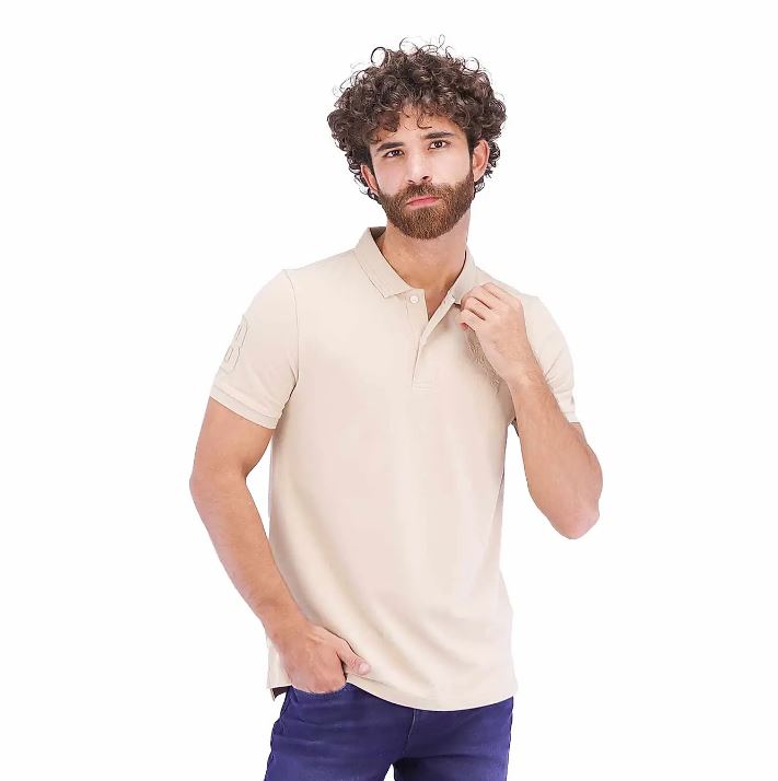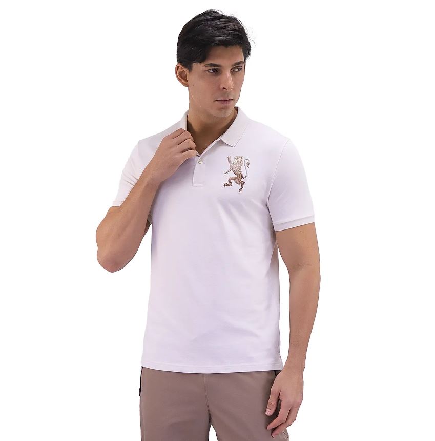ارتقِ بأناقتك مع قميص البولو ذي الياقة المحبوكة القصيرة والأكمام الضيقة والمطرز بتطريز جريء، المصنوع من القطن/الليكرا الفاخر.