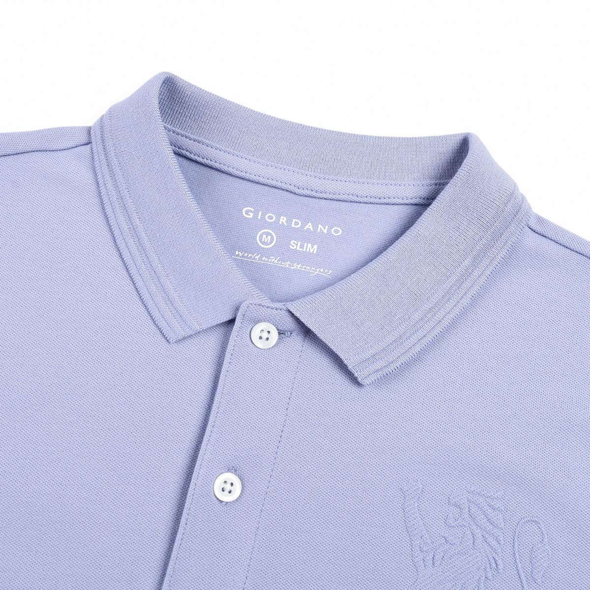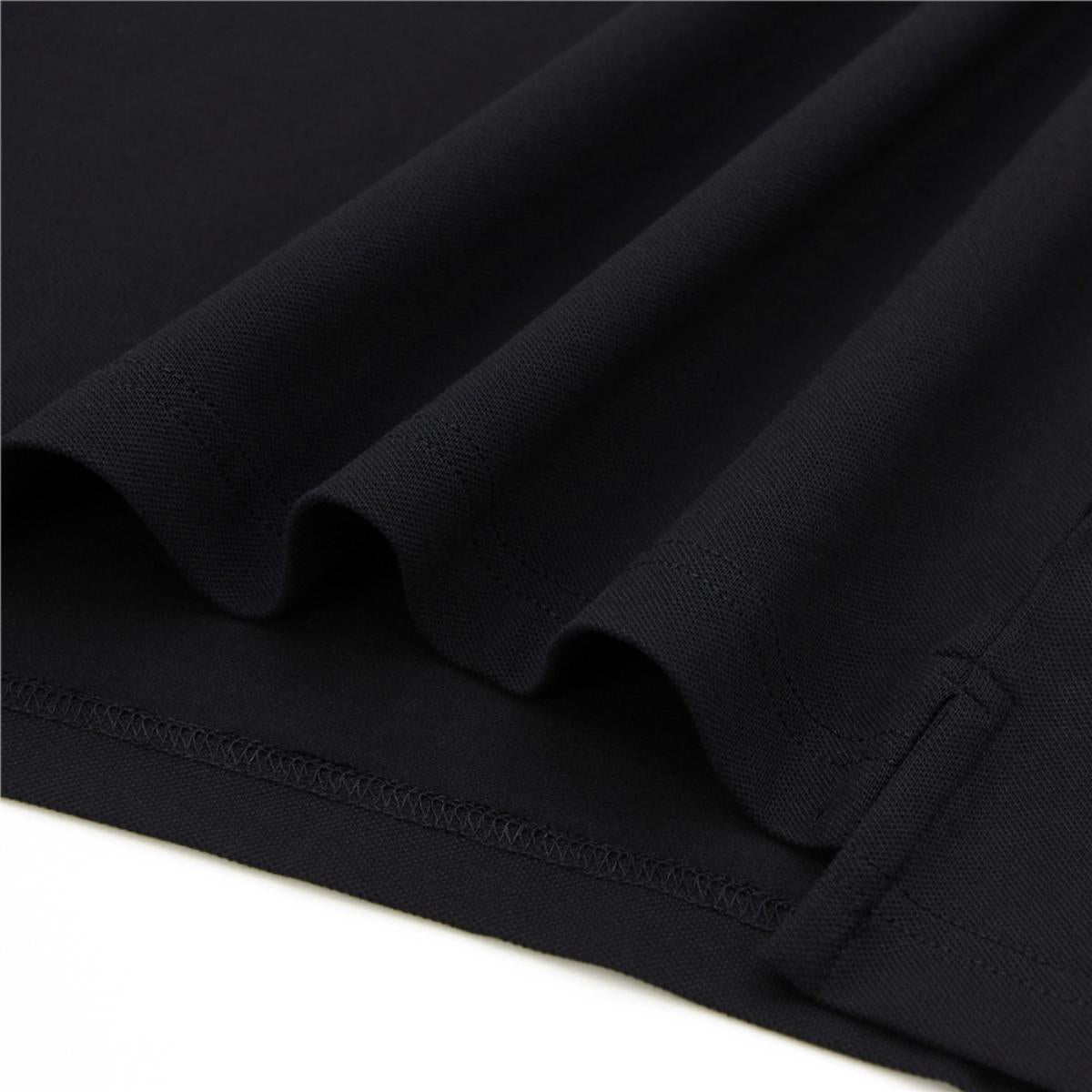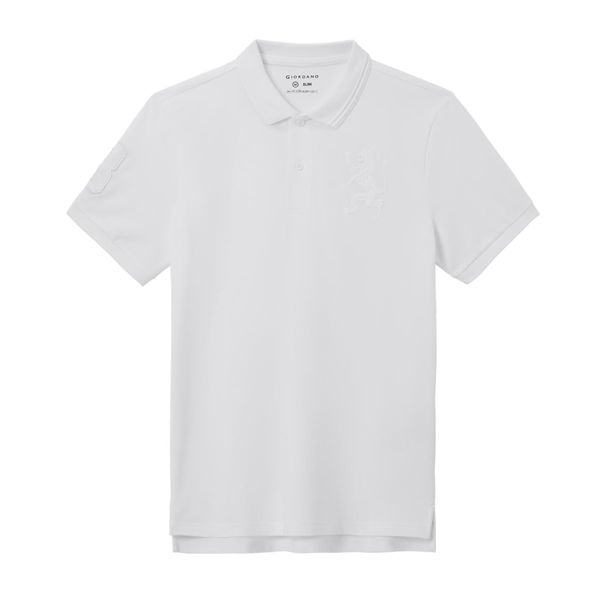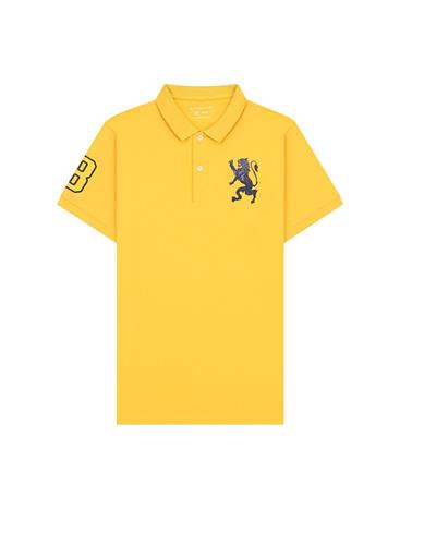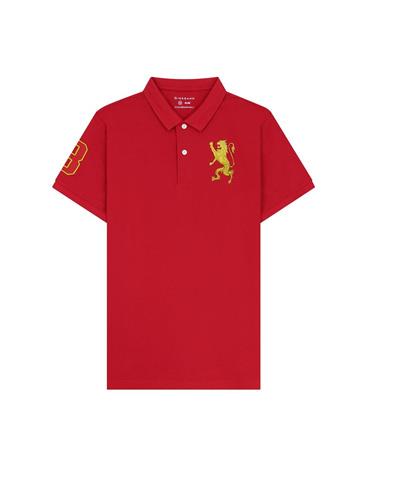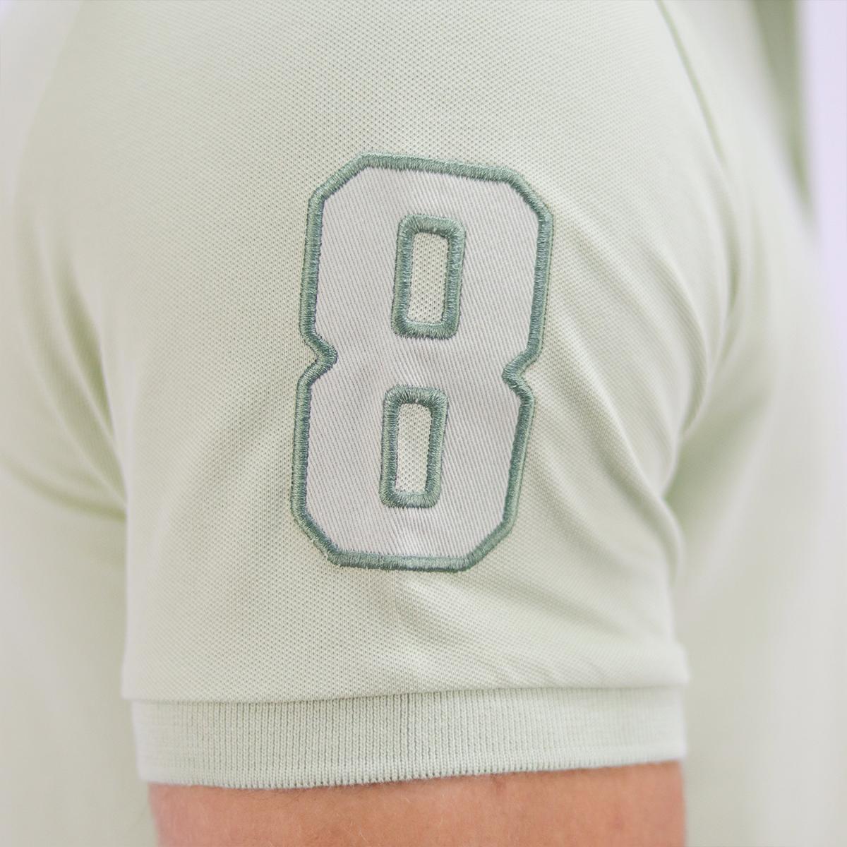 ارتقِ بأناقتك مع قميص البولو ذي الياقة المحبوكة القصيرة والأكمام الضيقة والمطرز بتطريز جريء، المصنوع من القطن/الليكرا الفاخر.