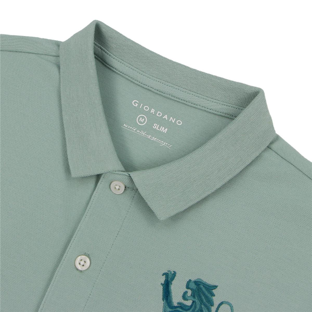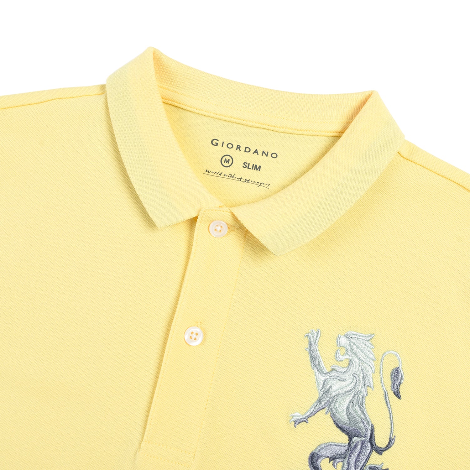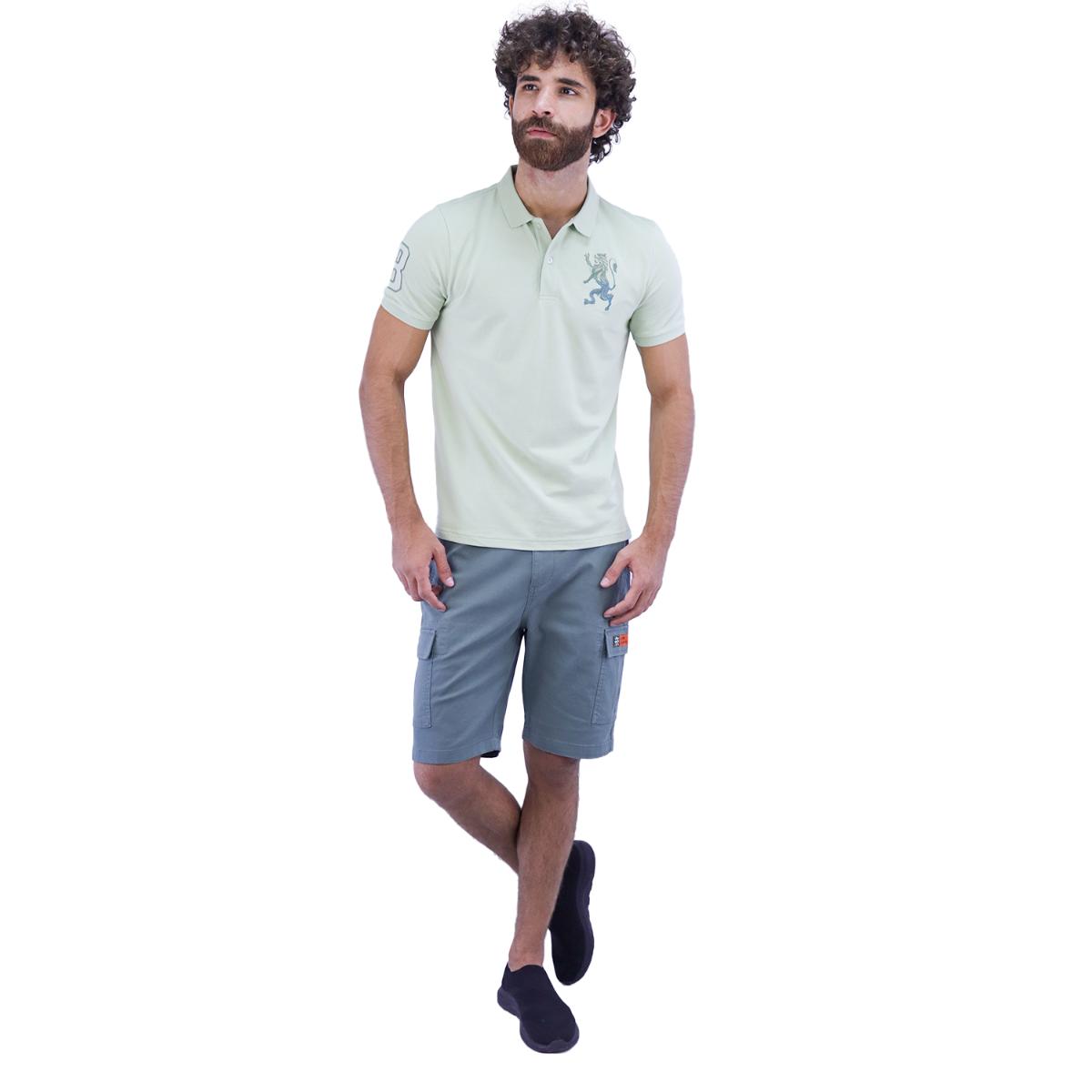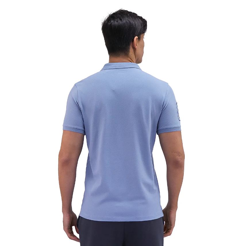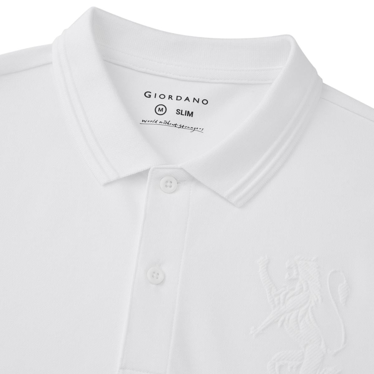 ارتقِ بأناقتك مع قميص البولو ذي الياقة المحبوكة القصيرة والأكمام الضيقة والمطرز بتطريز جريء، المصنوع من القطن/الليكرا الفاخر.