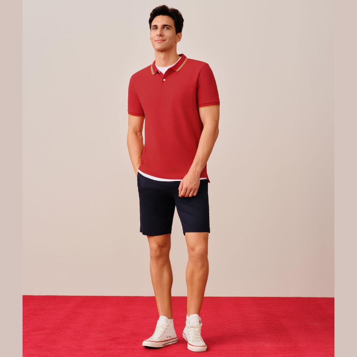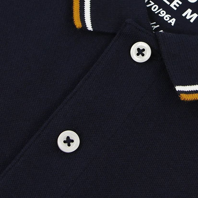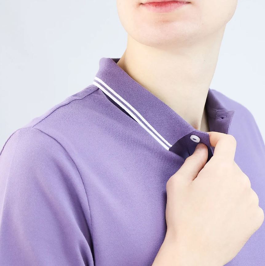 تصميم كلاسيكي:نسيج بيكيه محبوك لا يتقادم مع الزمن وياقة محبوكة.