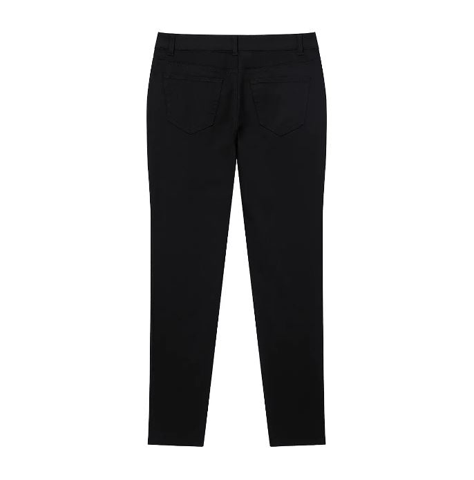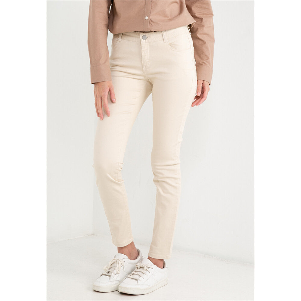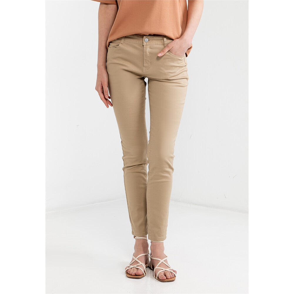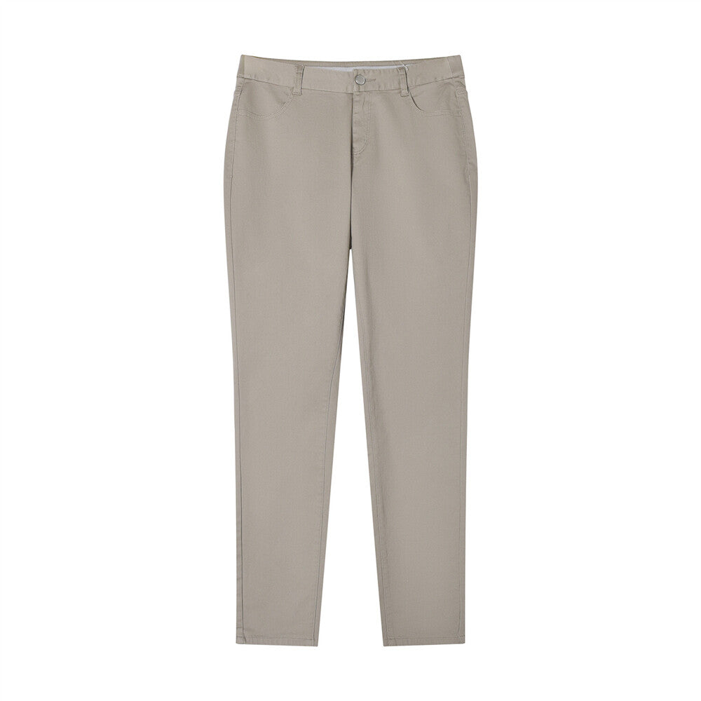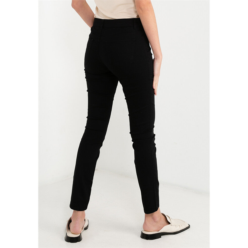 ارتقي بإطلالتك اليومية مع بنطلوننا النسائي المصنوع من القطن/السباندكس، ذو الخصر النحيف والقصة الضيقة والجيوب.
