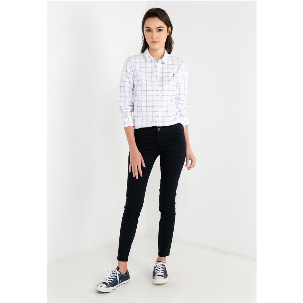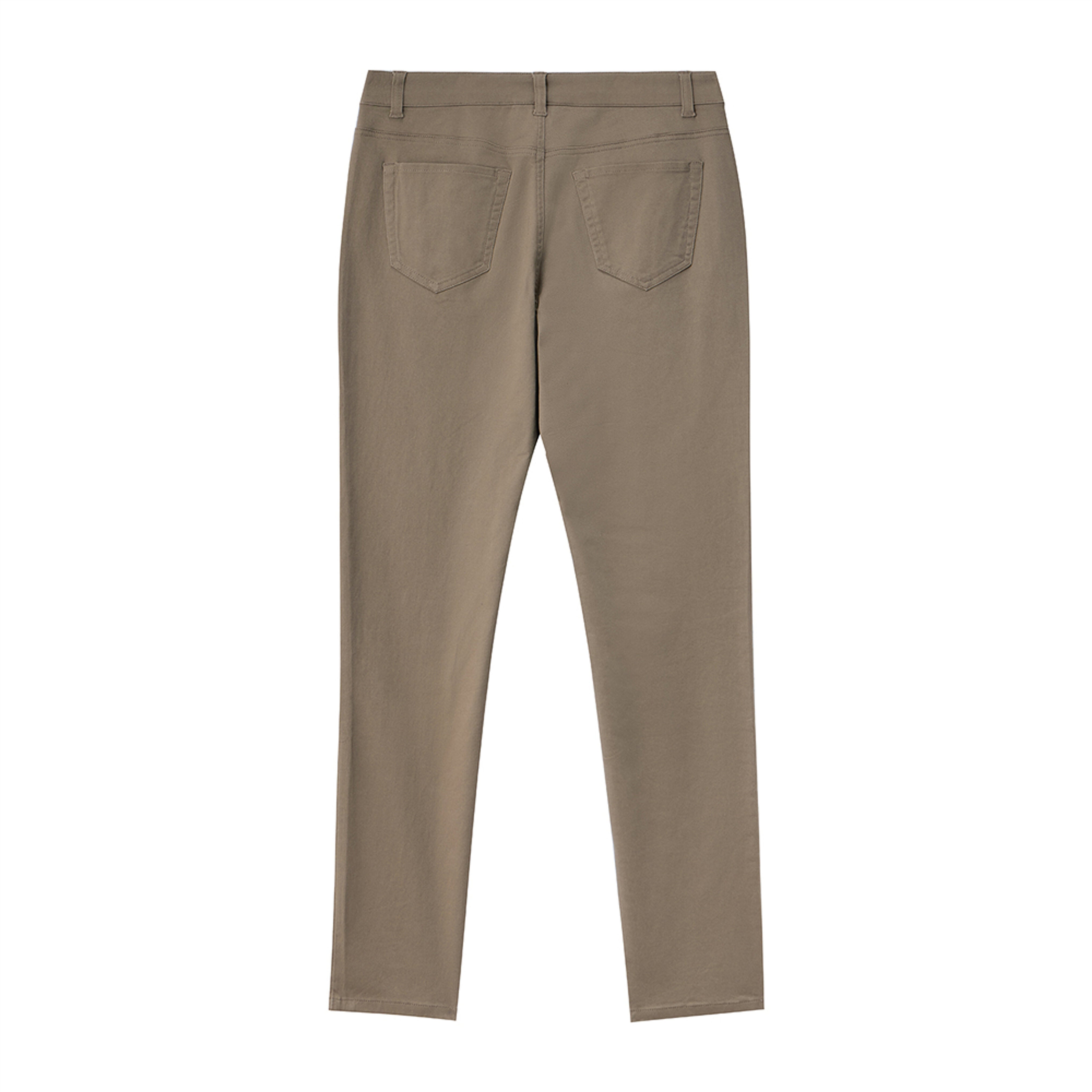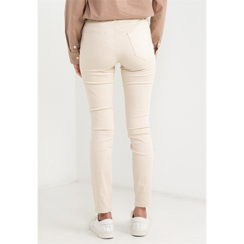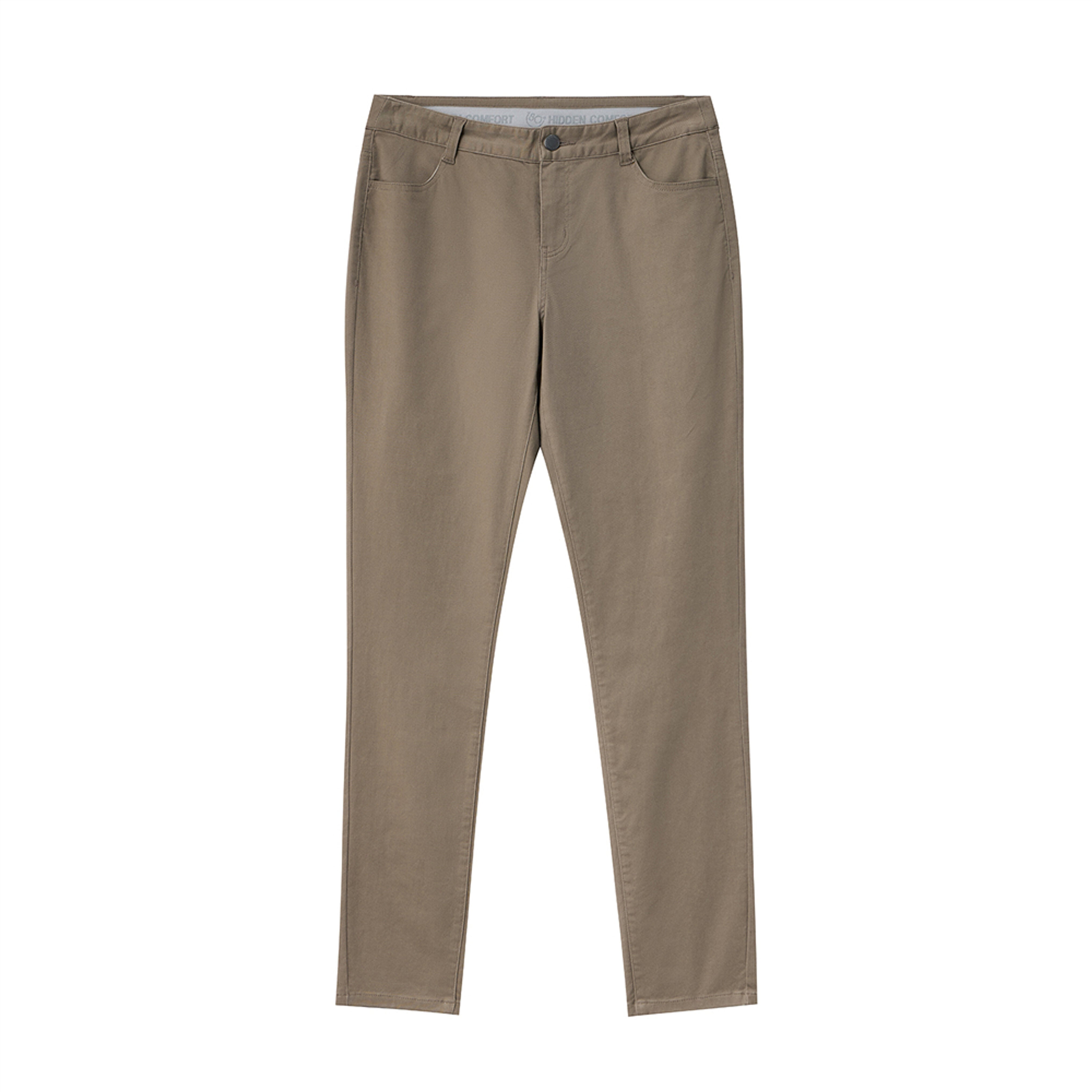 ارتقي بإطلالتك اليومية مع بنطلوننا النسائي المصنوع من القطن/السباندكس، ذو الخصر النحيف والقصة الضيقة والجيوب.