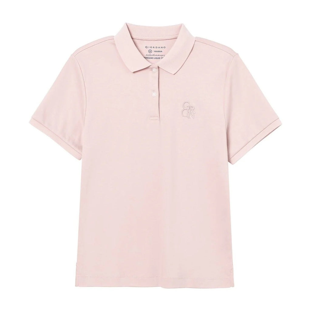 Women Cotton Interlock Flat Knitted Collar Short Sleeve Embroidery Solid Polo