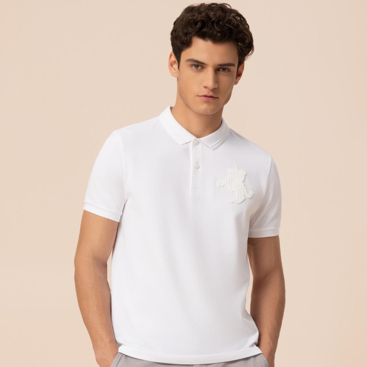Product Descriptions: Crafted from a luxurious blend of cotton and Lycra, this polo shirt offers exceptional comfort, stretch, and durability. The pique knit fabric provides a classic texture, while the knitted collar adds a touch of sophistication. The slim fit accentuates your physique, and the bold embroidery makes a striking statement. Perfect for both casual and business casual occasions.