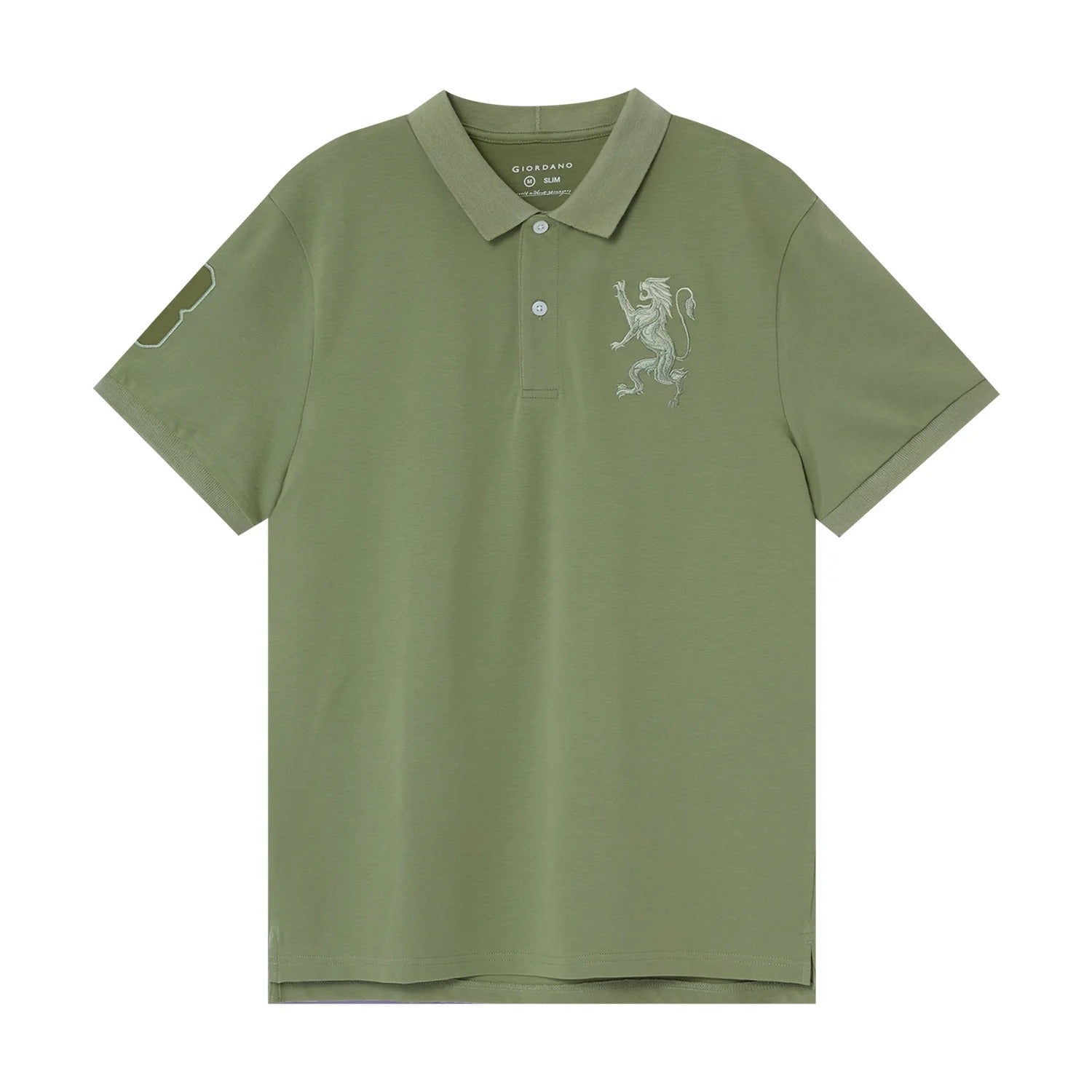 Elevate your style with our premium Cotton/Lycra Pique Knitted Collar Short Sleeve Slim Embroidery Lion Polo.
