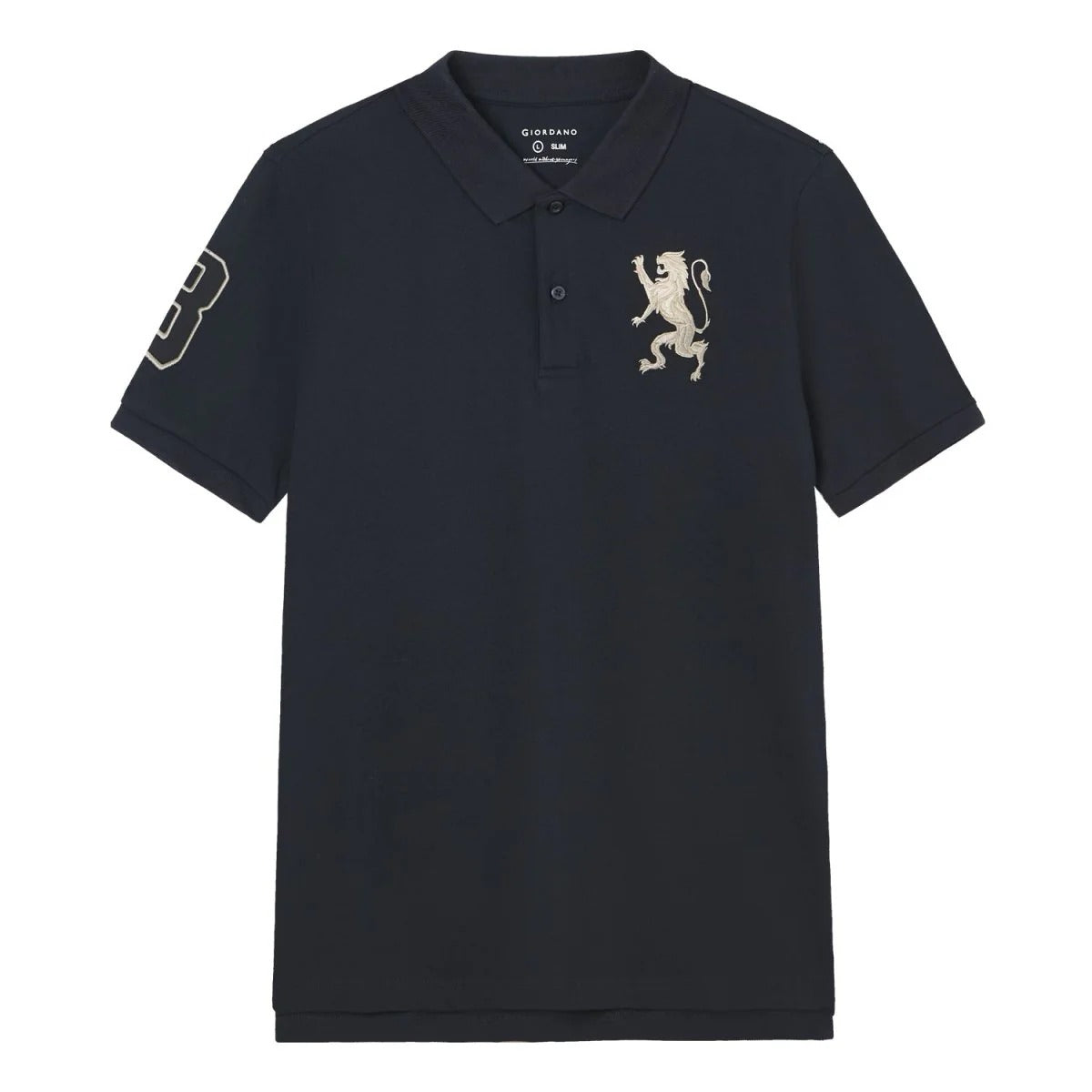 • Men's Slim Fit 3D Lion Embroidery Lycra Pique Polo