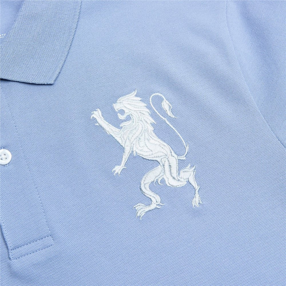 Cotton/Lycra Pique Flat Knitted Collar Short Sleeve Slim Embroidery Lion Polo
